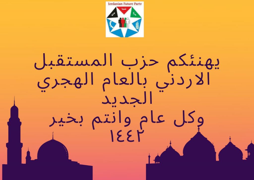 يتقدم حزب المستقبل الأردني من أبناء الشعب الأردني الكريم، والأمتين العربية والإسلامية بأخلص آيات التهنئة وأصدقها بمناسبة رأس السنة الهجرية، سائلين المولى عز وجل أن يرزقنا الأمن والإيمان، والسلامة والإسلام، وأن يعيدها علينا ونحن نرفل بالعافية والازدهار والاستقرار.